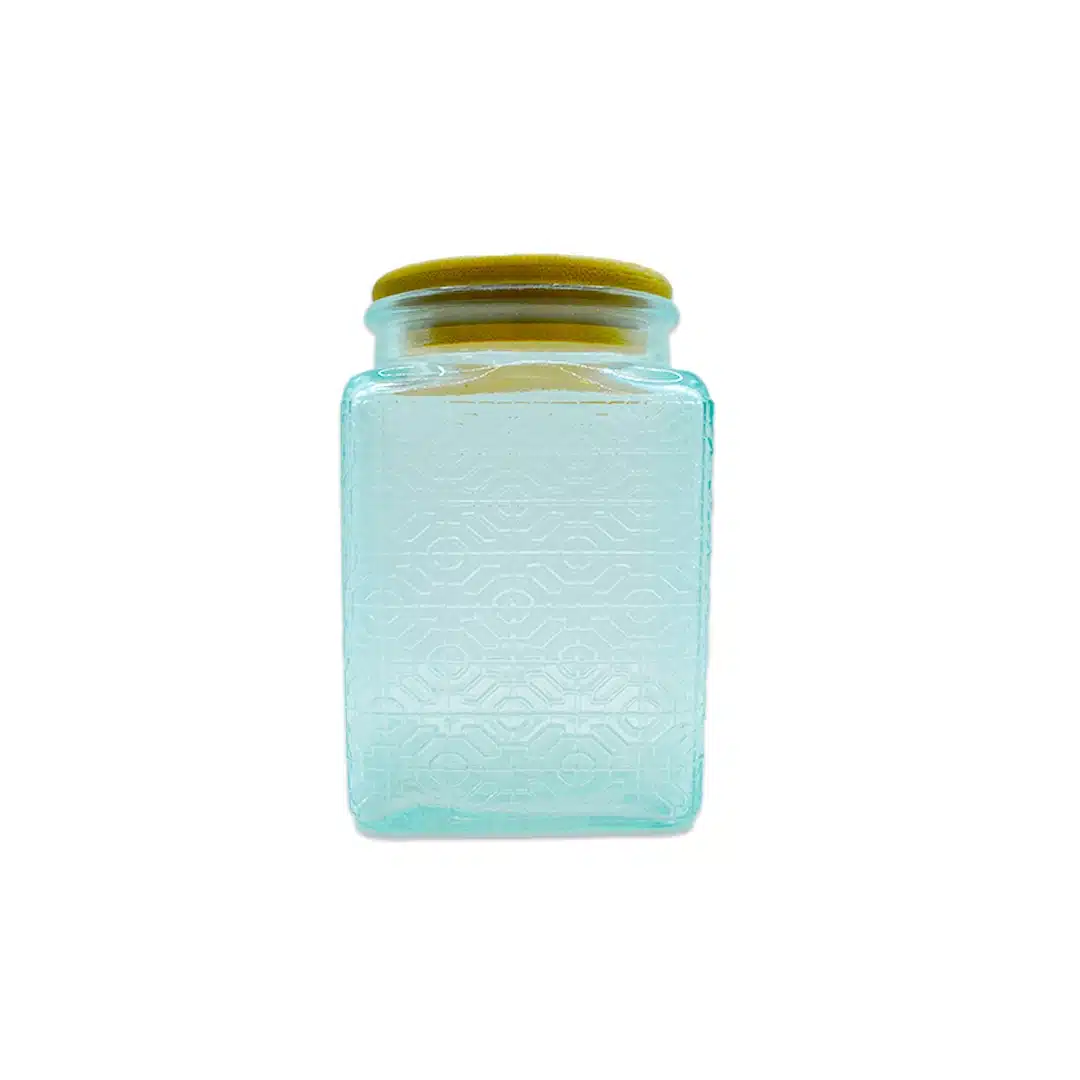 Frasco decorativo de diseรฑo cuadrado, perfecto para organizar pequeรฑos objetos o como elemento decorativo.