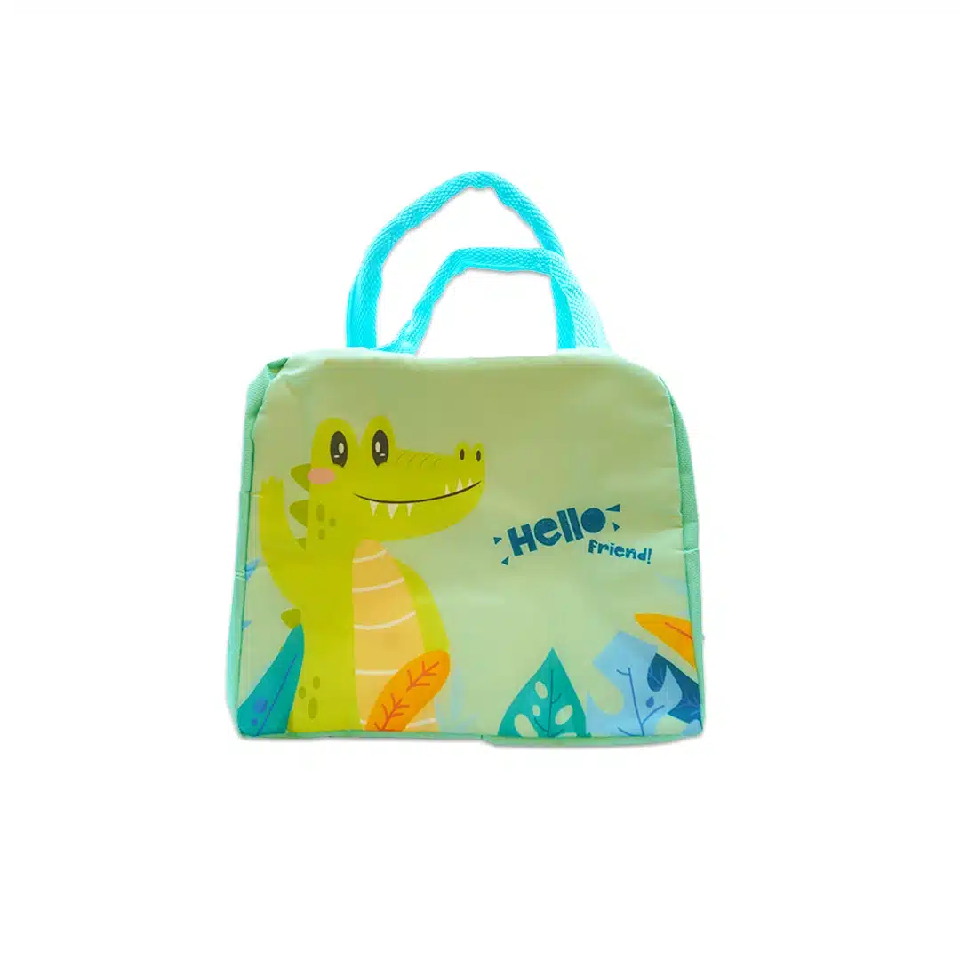 Lonchera térmica verde robusta y con diseño ergonómico, decorada con un llamativo motivo de cocodrilo. Diseñada para conservar la frescura de los alimentos en cualquier lugar, convirtiéndose en el accesorio perfecto para el uso cotidiano.
