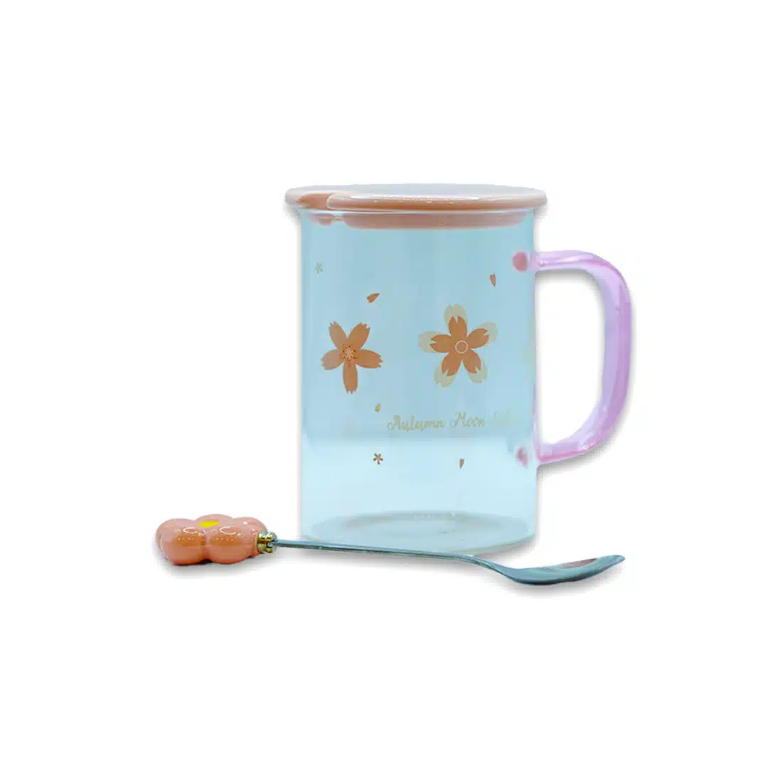Pocillo de la marca JY Life combina la transparencia del vidrio con delicados detalles en rosa, ideal para disfrutar de bebidas con un toque de estilo.