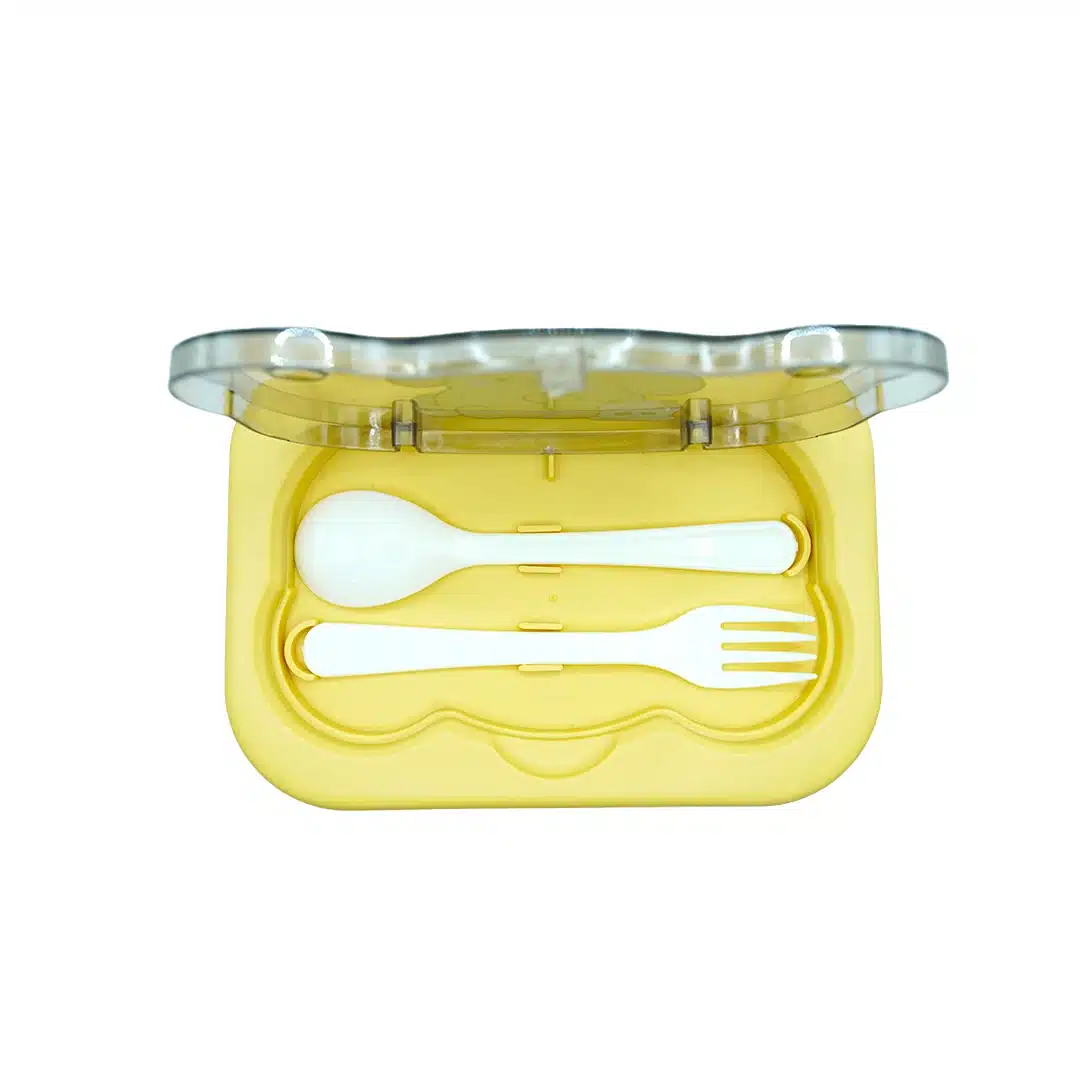 Porta comida amarillo con compartimientos, ideal para organizar y transportar tus alimentos de manera segura.
