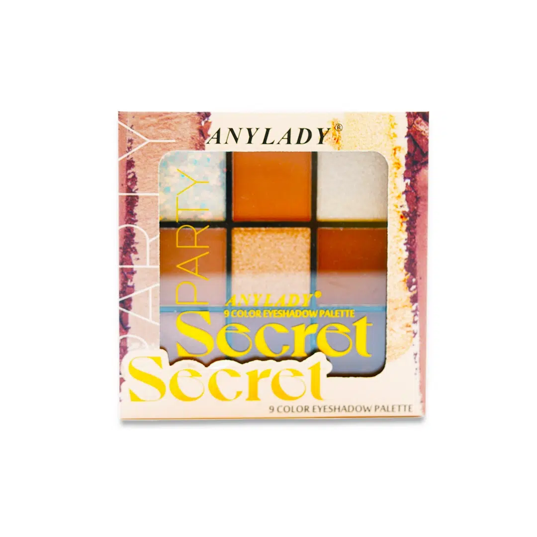Paleta de sombras de ojos Secret Party de Anylandy, con colores vibrantes y de alta pigmentaciรณn. Perfecta para crear looks de fiesta o eventos especiales.
