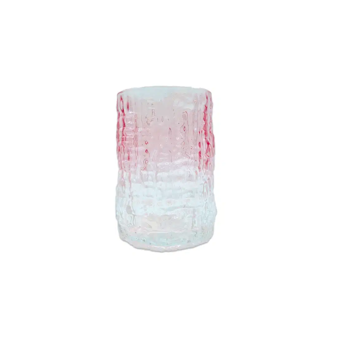 Vaso de vidrio con un diseรฑo contemporรกneo en tonalidades rosadas, elaborado con materiales resistentes para asegurar durabilidad y estilo en cada uso. Perfecto para bebidas frรญas o calientes.